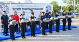 Playa del Carmen, Solidaridad a 5 de marzo del 2024.- Para el fortalecimiento y dignificación de los elementos de la Secretaría de Seguridad Pública y Tránsito Municipal, el gobierno de Solidaridad, que encabeza la presidenta Lili Campos, entregó 998 uniformes y equipos gestionados con el Fondo de Aportaciones para la …