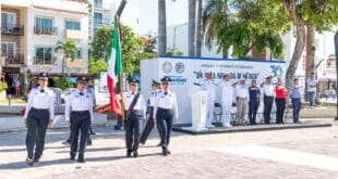 Playa del Carmen, Solidaridad, 23 de noviembre del 2023.- Emotiva ceremonia cívica por la conmemoración del Día de la Armada de México se llevó a cabo en la explanada de la 28 de Julio, frente al palacio municipal, presidida en representación de la edil Lili Campos por el oficial mayor …
