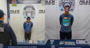 Playa del Carmen, Solidaridad a 27 de noviembre de 2023.- Como resultado del operativo permanente de vigilancia en todo el municipio, la Policía de Solidaridad aseguró a un sujeto luego de presuntamente herir y amenazar a una mujer con arma blanca, así como a un sujeto en posesión de posibles …