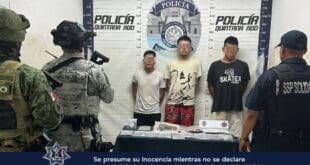 Playa del Carmen, Solidaridad a 13 de octubre de 2023.- Con acciones de respuesta inmediata, la Policía Municipal de Solidaridad aseguró a un sujeto por el posible delito de homicidio, y en otro punto de la ciudad detuvo a una pareja en posesión de posibles cartuchos útiles y narcóticos. Tras …
